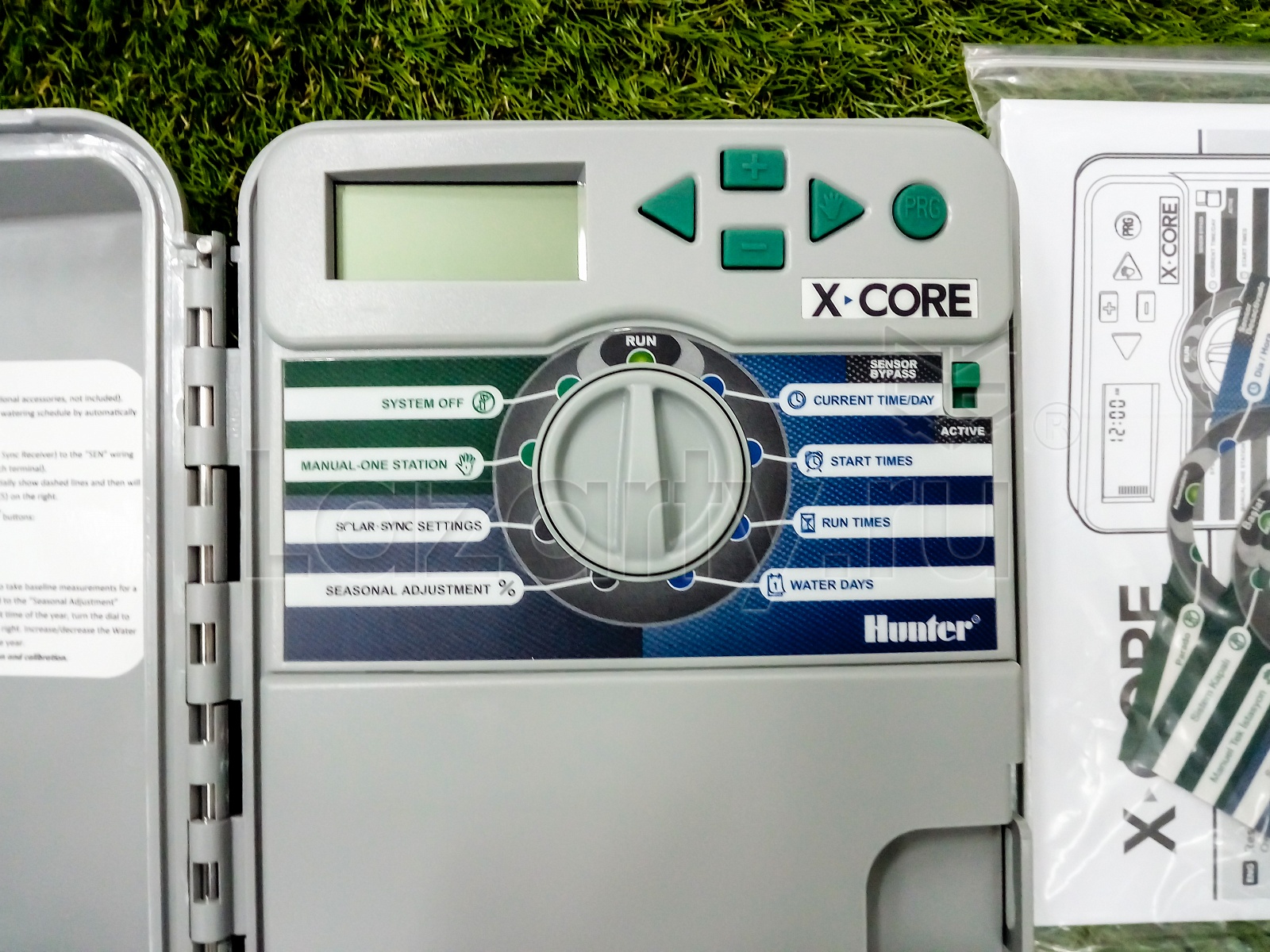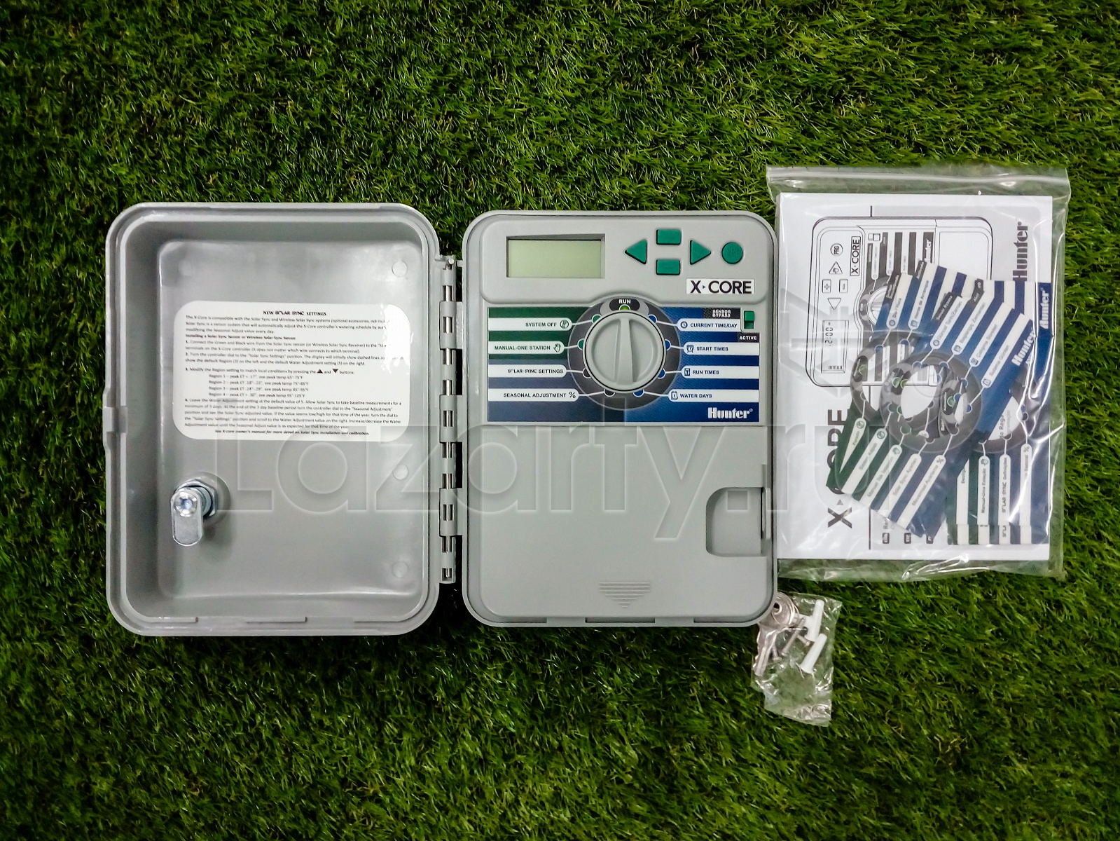 Пульт управления Hunter XC-601-E - предназначен для управления шестью зонами полива и устанавливается как в помещении, так и на улице (имеет защитную крышку с замком и комплектом ключей).