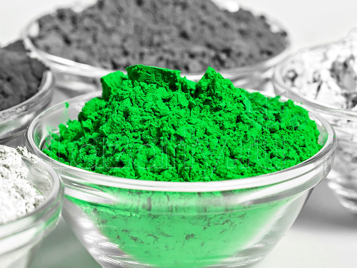 Пигмент железноокисный зеленый – это синтетическое порошкообразное вещество, предназначенное для получения зеленого цвета в строительных смесях, красках и т.д. Его получают путем смешения желтого железоокисного с голубым или зеленым фталоцианиновым пигментом.