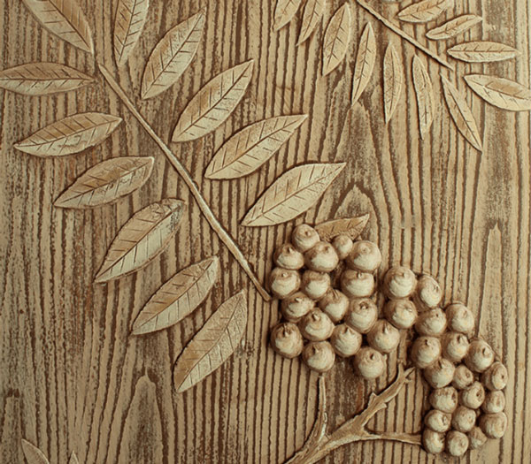 Рисунок формируется при помощи резинового валика, трафарета, шпателя и других приспособлений. Валик после каждого нанесения смачивать в холодной воде.