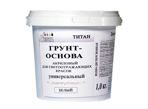 Грунт акриловый для светоотражающих красок Титан предназначен для подготовительных работ перед окрашиванием световозвращающими, флуоресцентными и люминесцентными красками. Основная функция грунта – создание ярко-белой основы для лучшего светоотражения и более качественного сцепления с поверхностью.