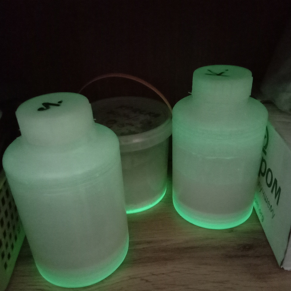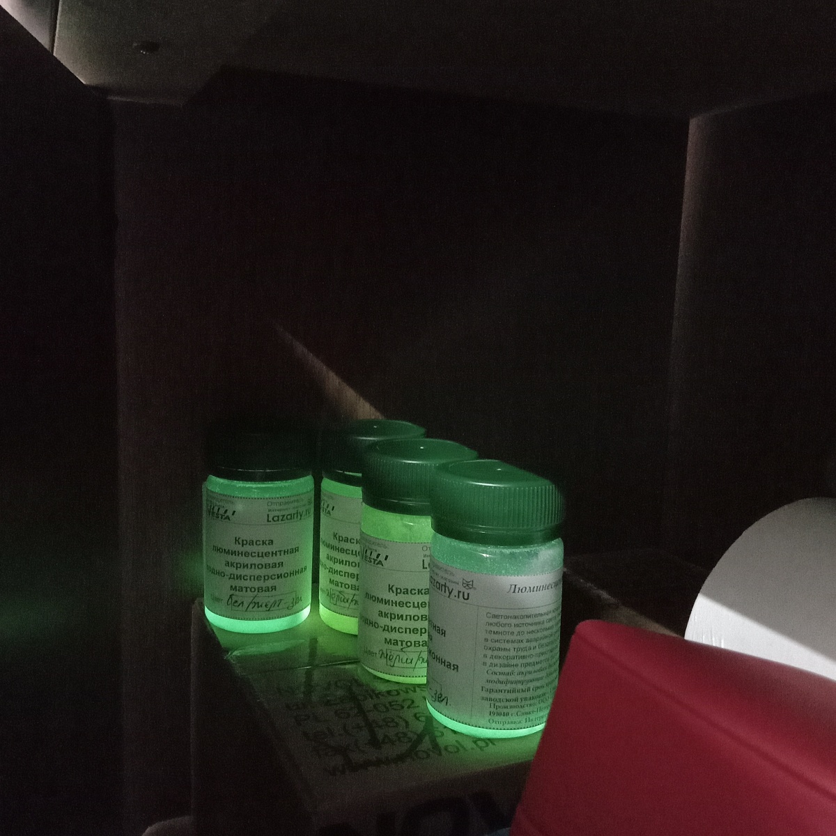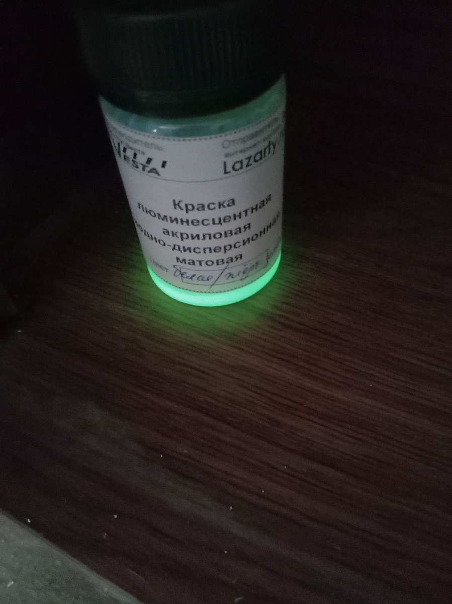 Краску энергично перемешать и нанести на сухую и чистую поверхность в 1-3 слоя. Чем больше будет слоев, тем ярче свечение.