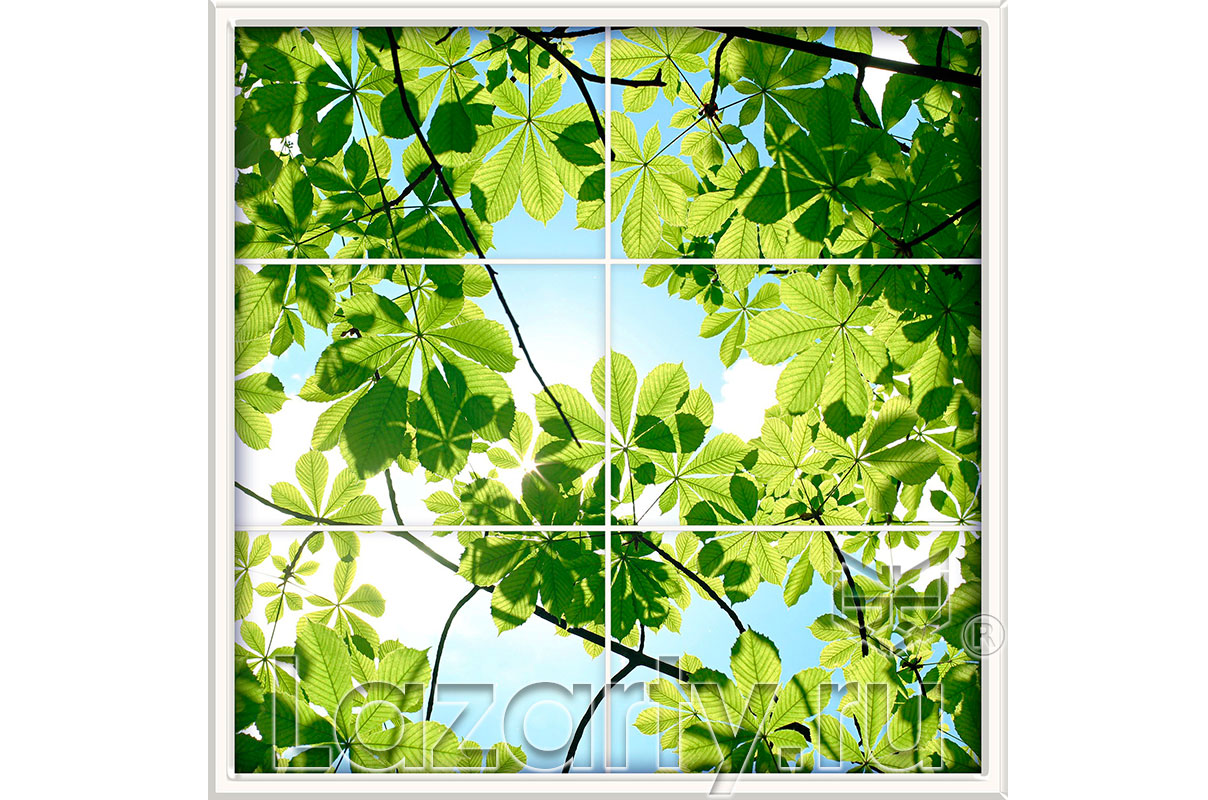 Защитное стекло Листья каштана имеет два размера: один квадратный 60х60 см, другой - прямоугольный 60х90 см. Стеклянный экран для кухни с красочным декоративным изображением зелёной листвы дерева станет главным украшением интерьера.