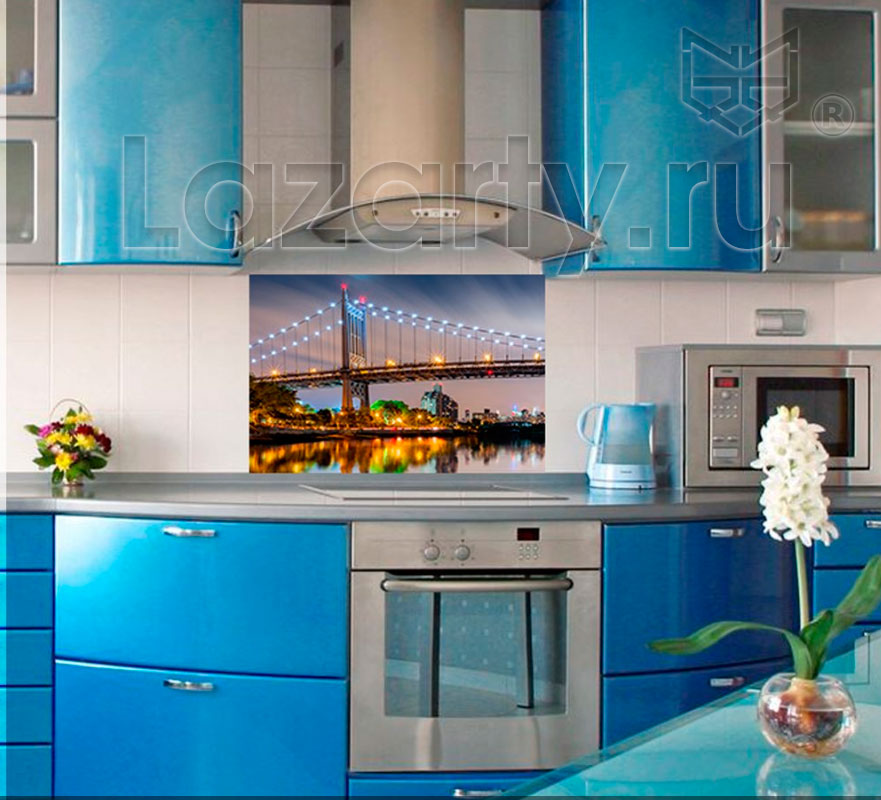 Оплата картой онлайн переводЗащитное стекло Мост через Ист Ривер с городским ночным пейзажем знаменитого моста станет главным украшением интерьера кухни. Стеклянный фартук выполнен в горизонтальном формате, рисунок нанесен методом УФ-фотопечати.