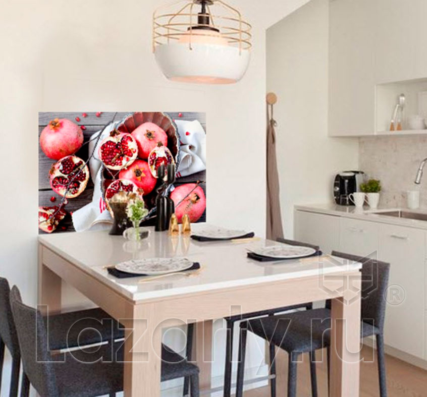 Оплата картой онлайн переводЗащитное стекло Натюрморт с гранатами в горизонтальном исполнении выполнено с помощью метода УФ-фотопечати. Сочные спелые фрукты с рубиновыми зернами смотрятся аппетитно и актуально в интерьере кухни или столовой. Фартук из стекла пожаробезопасен, поэтому его разрешено устанавливать рядом с плитой, варочной панелью, камином.