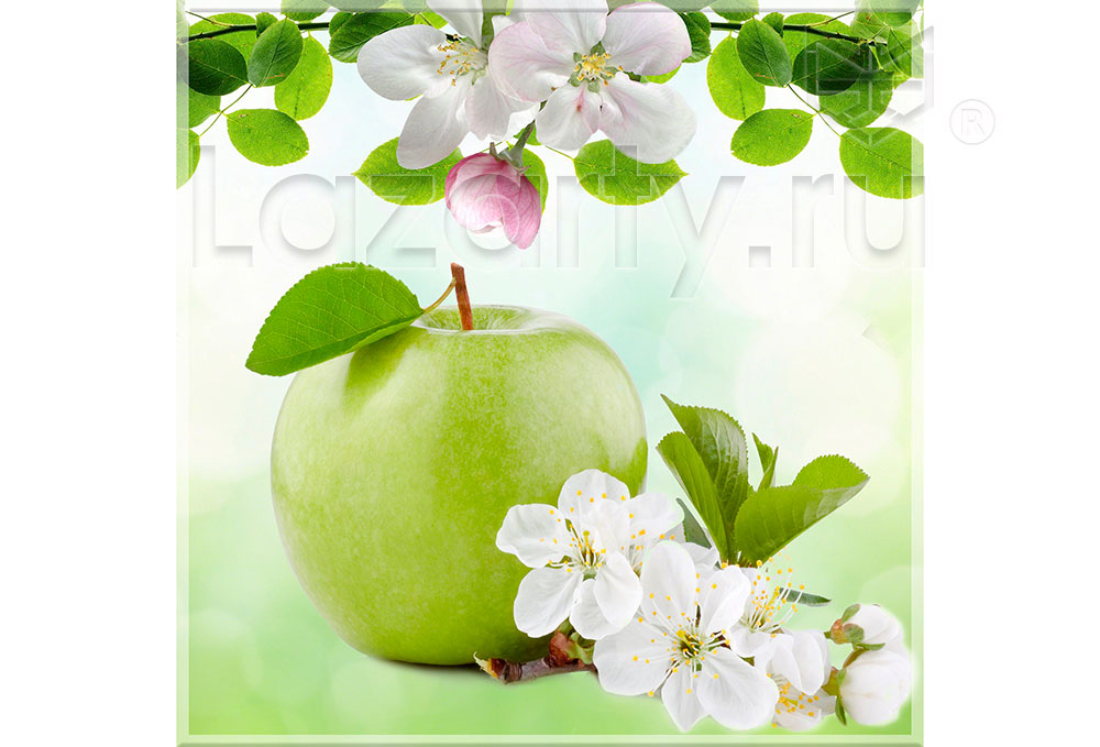 Оплата картой онлайн переводЗащитное стекло Весенние яблоки с изображением яблоневых цветов и фруктов актуально для отделки стен кухни.