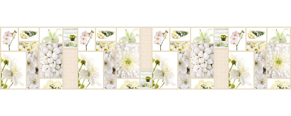 Коллаж из белоснежных цветов фартука МДФ AF 28 никого не оставит равнодушными. Галерея из нежных орхидей, хризантем, пионов и тюльпанов освежит и украсит интерьер кухни или гостиной. Белая мебель или стены помогут скомпоновать нежный классический интерьер, темный фон сделает его более контрастным и современным. Глянцевый слой МДФ-панели превосходно оберегает стены от влаги, загрязнений и выгорания на солнце.