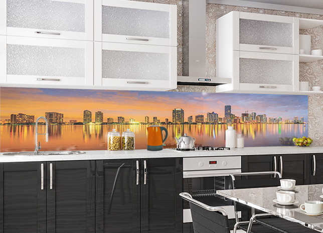 Оплата картой онлайн переводЖивописный фартук МДФ Городской пейзаж 5 с изображением просыпающегося Нью-Йорка под лучами восходящего солнца выполнен по технологии Альбико.