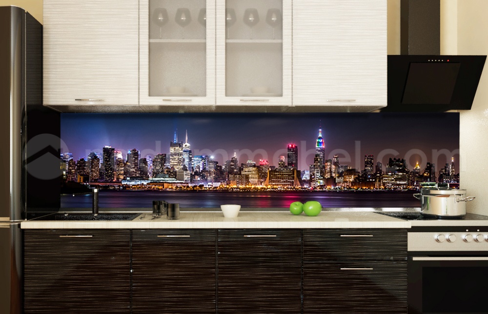 Оплата картой онлайн переводКрасочный фартук МДФ Городской пейзаж 6 с изображением яркой ночной жизни Нью-Йорка выполнен по технологии Альбико.