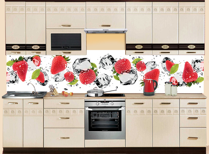 Оплата картой онлайн переводСимпатичный фартук МДФ Клубника 2 с изображением спелой клубники и кубиков льда выполнен по технологии Альбико.