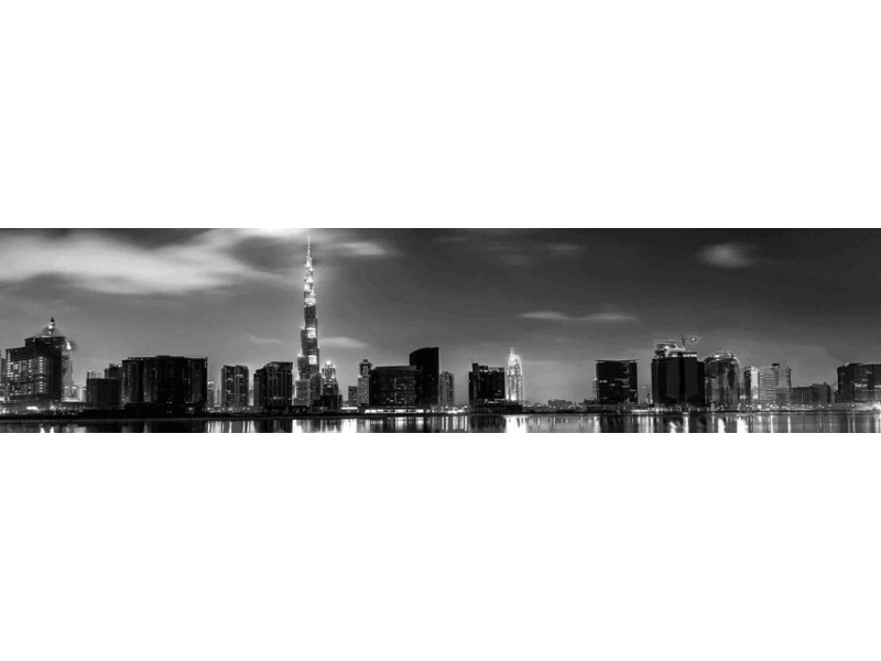 Оплата картой онлайн переводМонохромный фартук МДФ Огни ночного города 2 с ночной панорамой набережной выполнен по технологии Альбико.