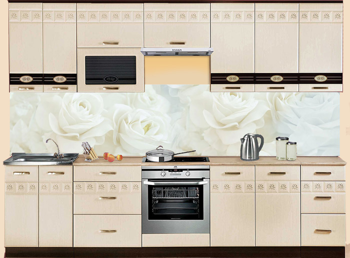 Живописный фартук МДФ SP 149 с великолепными белыми розами - отличный вариант для декорирования кухни или гостиной. Нежные белые лепестки выглядят очень реалистично и вызывают положительные эмоции. Прозрачный глянцевый слой МДФ-фартука имитирует стеклянную поверхность и превосходно оберегает стены от влаги, загрязнений и выгорания на солнце.