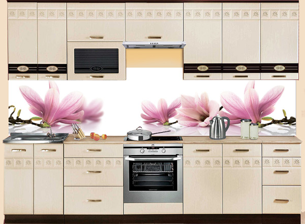 Белый фартук МДФ SP 186 с розовыми магнолиями - эффектное решение для украшения кухонного рабочего пространства. Нежный рисунок цветов на светлом фоне акцентирует внимание на стенах кухни, кафе или другого помещения. Надежный глянцевый слой МДФ имитирует стеклянную поверхность и превосходно оберегает поверхности от влаги, загрязнений и выгорания на солнце.