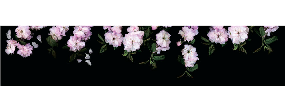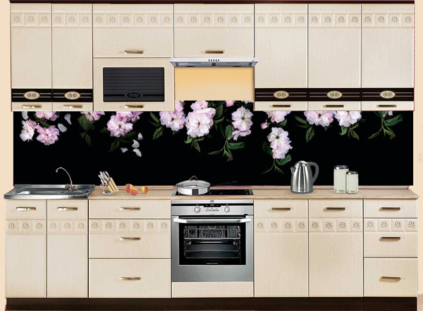Черный фартук МДФ SP 187 со свисающей гирляндой розовых цветов - эффектное решение для защиты и декорирования поверхностей. Нежный рисунок на черном фоне создает красивый контраст, привлекающий внимание к стенам кухни, кафе или другого помещения. Надежный глянцевый слой МДФ имитирует стекло и превосходно оберегает поверхности от влаги, загрязнений и выгорания на солнце.