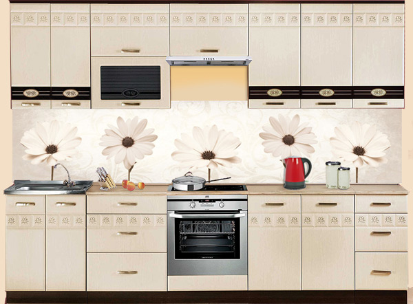 Светлый фартук МДФ SP 197 с белыми цветами - симпатичная МДФ панель для декора кухни или гостиной. Живописная композиция освежает интерьер, создает уютную атмосферу. Высокий глянцевый слой МДФ-фартука имитирует стеклянную поверхность и превосходно оберегает стены от влаги, загрязнений и выгорания на солнце.