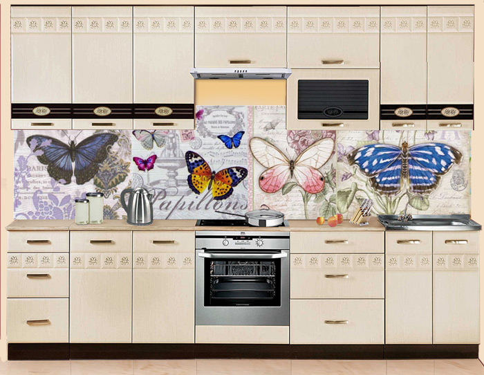 Оплата картой онлайн переводВинтажный фартук МДФ Батерфляй с тиснением под дерево - удачное украшение интерьера кухни и защита поверхности от загрязнения. Живописные бабочки на фоне цветов оживляют пространство комнаты и добавляют радостное настроение.