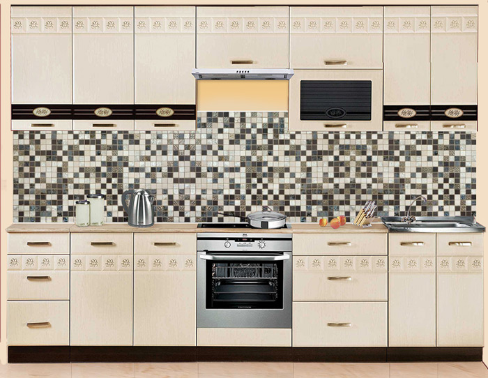 Колоритный фартук МДФ Мозаика светлая, имитирующий керамическую мозаику, выглядит очень реалистично в интерьере. Геометрический рисунок панели в бежево-коричневой гамме гармонирует с любыми натуральными оттенками. Верхний слой добавляет реалистичности благодаря матовой поверхности и отсутствию сильного блеска. Тем не менее он надежно защищает стены от брызг, влаги и загрязнений.