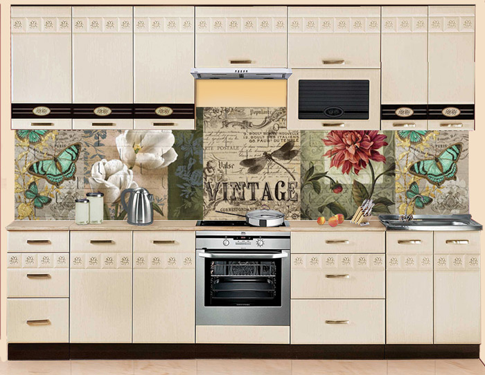 Оплата картой онлайн переводФартук МДФ Винтаж с изображениями цветов, бабочек на фоне надписей имеет тиснение "под кирпич". Ретро-рисунок панели будет гармонировать с интерьером, оформленном в похожем стиле. Тиснение добавит небольшого визуального объема поверхностям.