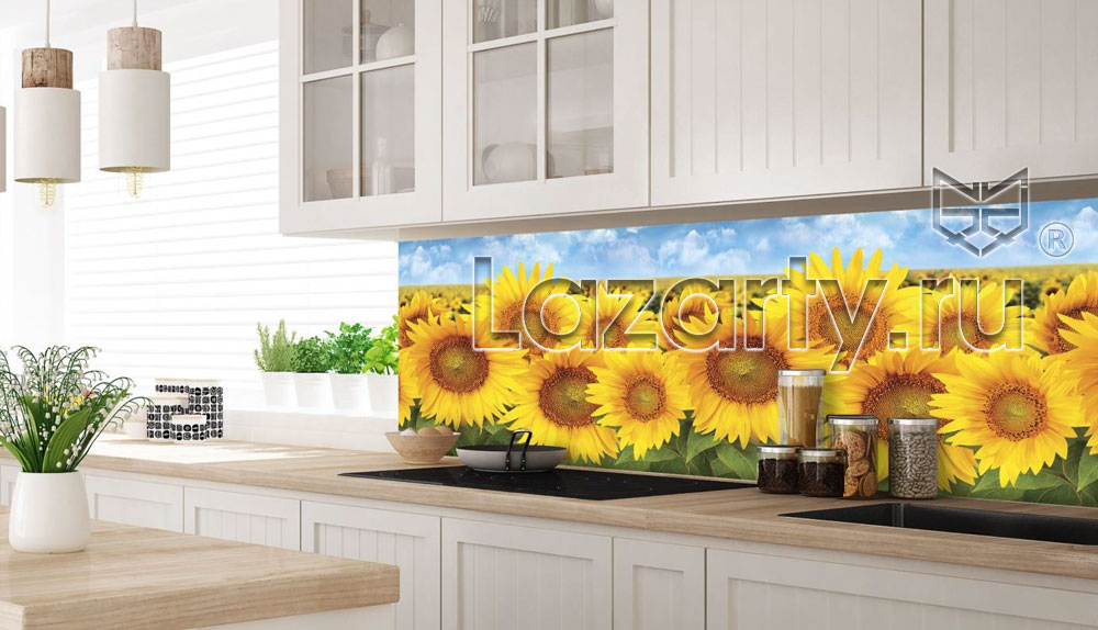 Оплата картой онлайн переводНа фартуке из АБС пластика Подсолнухи - чудесный летний пейзаж с яркими цветами солнца. Живописная картина добавляет цвета и света в интерьер кухни, переносит нас в лето и поднимает настроение во время приготовления пищи.