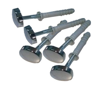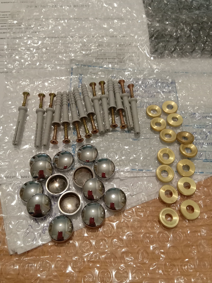 Крепеж состоит из дюбеля и болта с декоративной металлической "шапочкой", которая будет скрывать отверстие и сам болт.