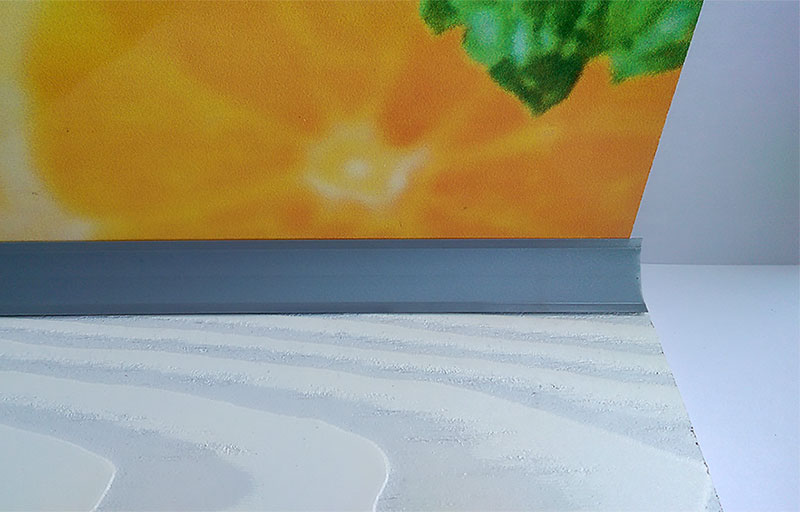 Галтель прекрасно сочетается с панелями из ПВХ, МДФ, ХДФ, обоями и плиткой. Монтируется при помощи жидких гвоздей, клея для аквариумов или герметика на клеевой основе. Защитная пленка легко снимается после установки.