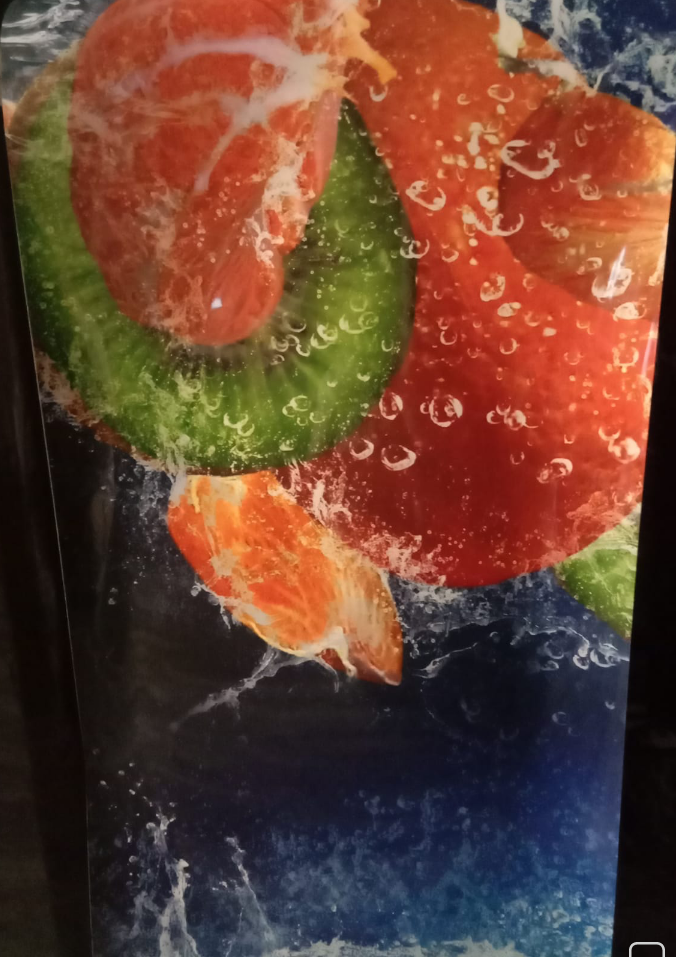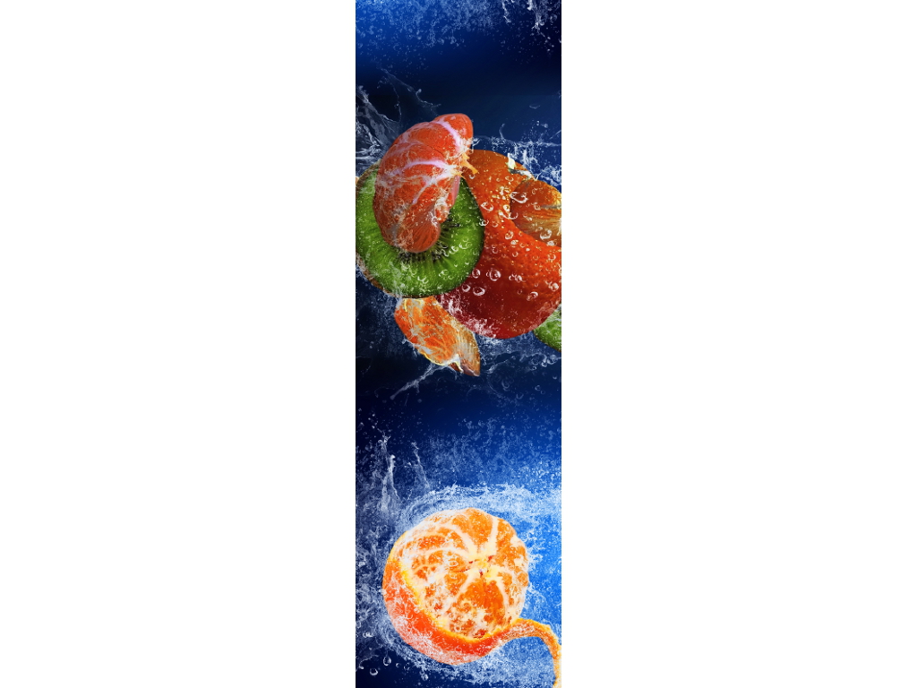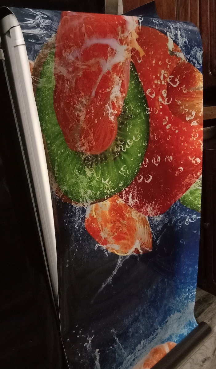 Декоративная магнитная панель Фрукты 976 с миксом цитрусовых и клубники — один из лучших способов не только украсить холодильник, но и скрыть царапины и вмятины на его поверхности.