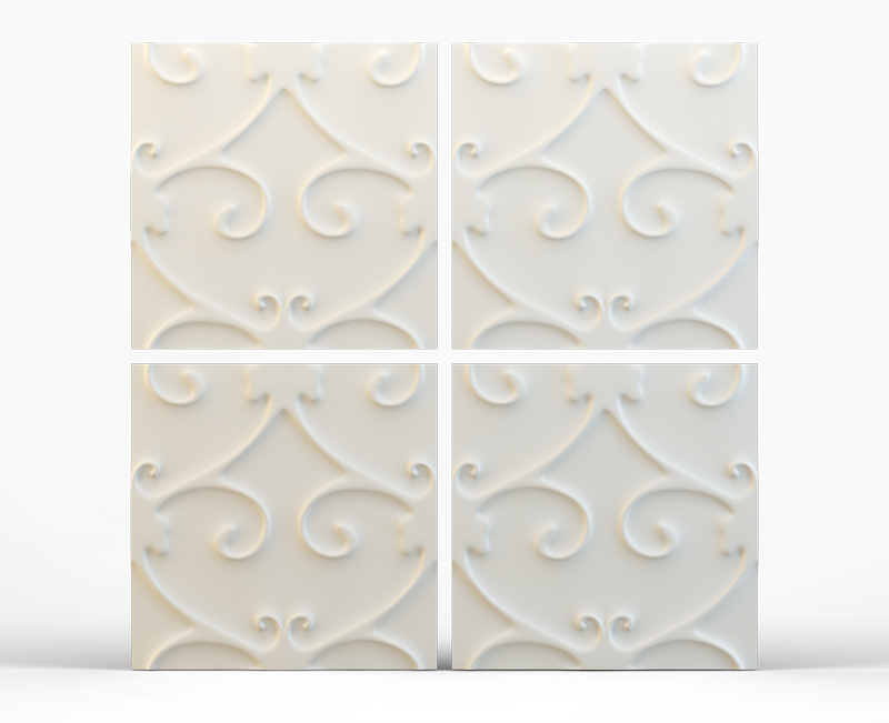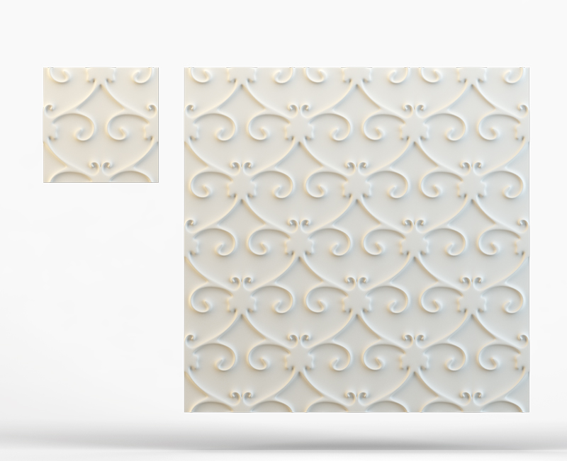 Гипсовые 3D панели Золотой Дамаск и Молдинг созданы в виде двух отдельных видов плиток, каждая из которых имеет размер 50х50 см. Их легко и просто укладывать. Просчитать площадь поверхности стен и требуемое количество плиток не составит труда. Общая площадь четырех модулей составляет ровно 1 кв. м.