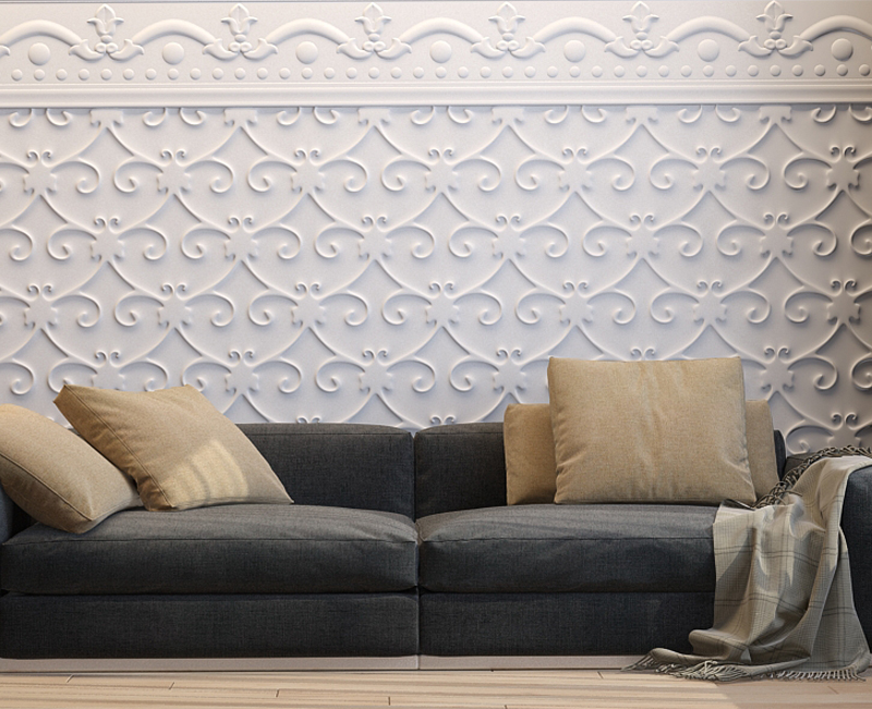 Благодаря 3D гипсовым панелям интерьер комнаты приобретает небрежный шик и элегантность. Самыми лучшими помещениями для них являются гостиная и спальня. Их можно окрашивать в любые цвета, что непременно создаст в комнате дополнительный уют и настроение. Часто используются в качестве перегородок для зонирования пространства.