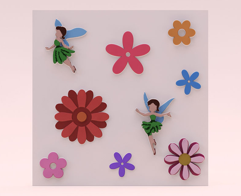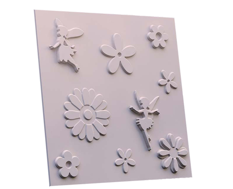 Гипсовые 3D панели Феи с детским сказочным рисунком прекрасно подойдут для внутренней отделки детской комнаты. Веселый рисунок в виде летающих фей среди цветов обязательно понравится малышам. Окрасив отдельные элементы в разные оттенки, можно добиться интересного эффекта.