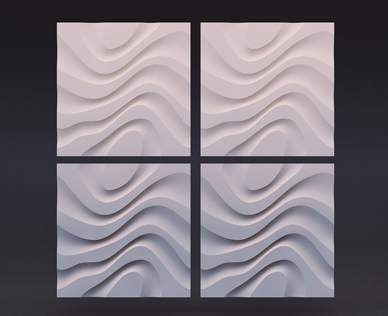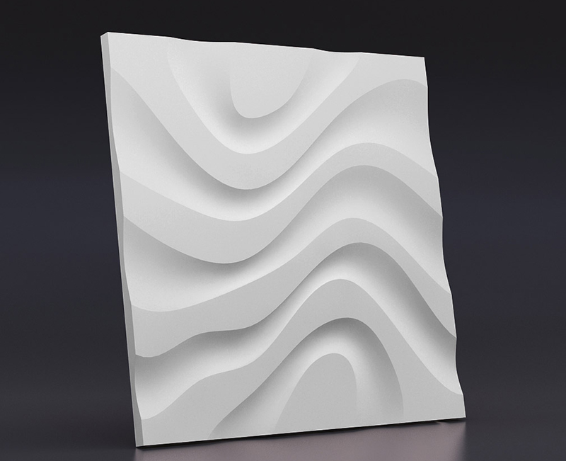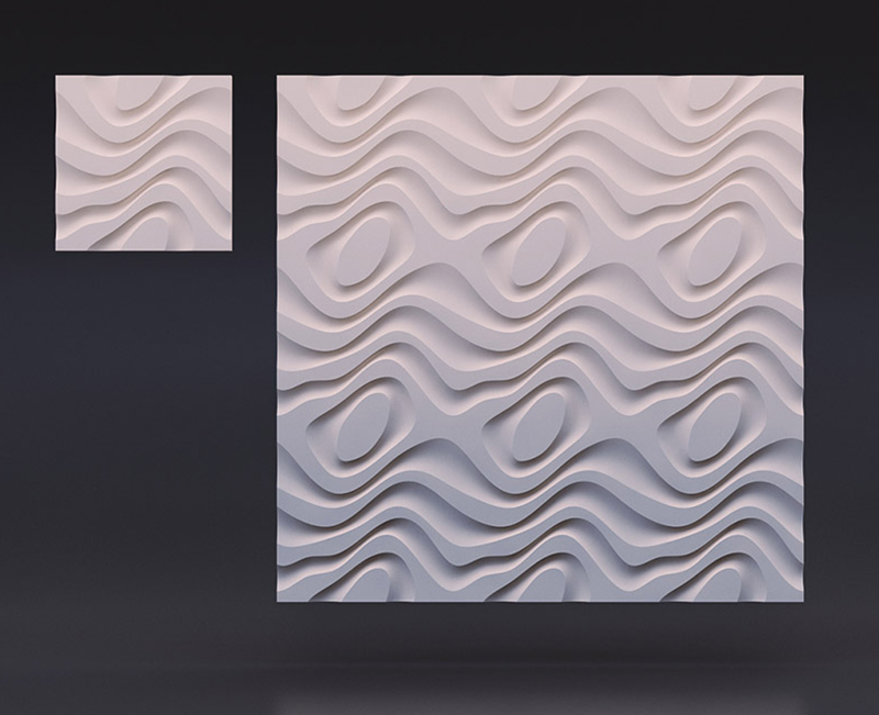 Гипсовые 3D панели Интер созданы в виде плитки размером 50х50 см. Их легко и просто укладывать. Просчитать площадь поверхности стен и требуемое количество плиток не составит труда. Общая площадь четырех панелей составляет ровно 1 кв. м.