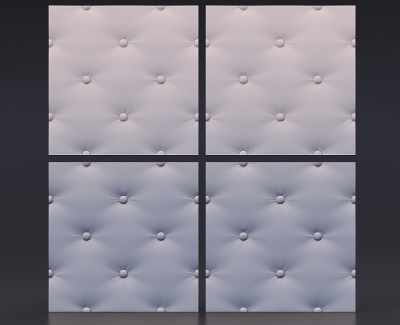 Гипсовые 3D панели Кожа Капитоне созданы в виде плитки размером 50х50 см. Их легко и просто укладывать. Просчитать площадь поверхности стен и требуемое количество плиток не составит труда. Общая площадь четырех модулей составляет ровно 1 кв. м.