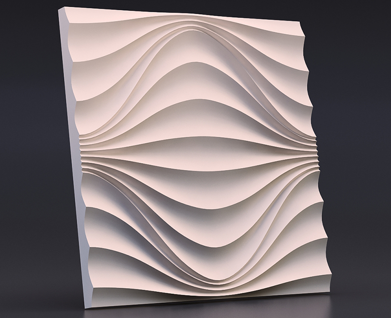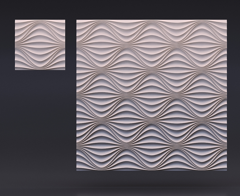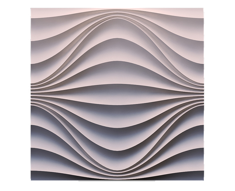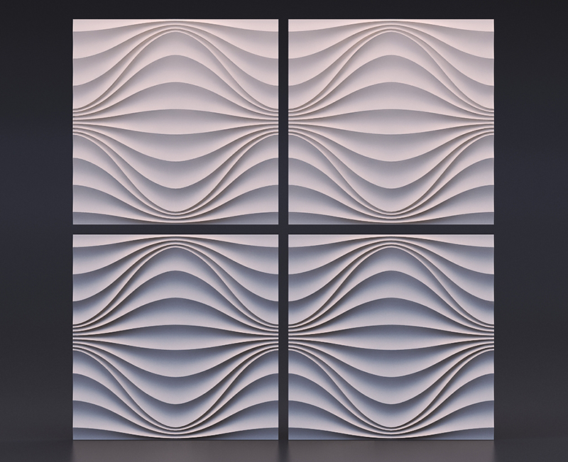 Гипсовые 3D панели Круговая Волна созданы в виде плитки размером 50х50 см. Их легко и просто укладывать. Просчитать площадь поверхности стен и требуемое количество плиток не составит труда. Общая площадь четырех модулей составляет ровно 1 кв. м.