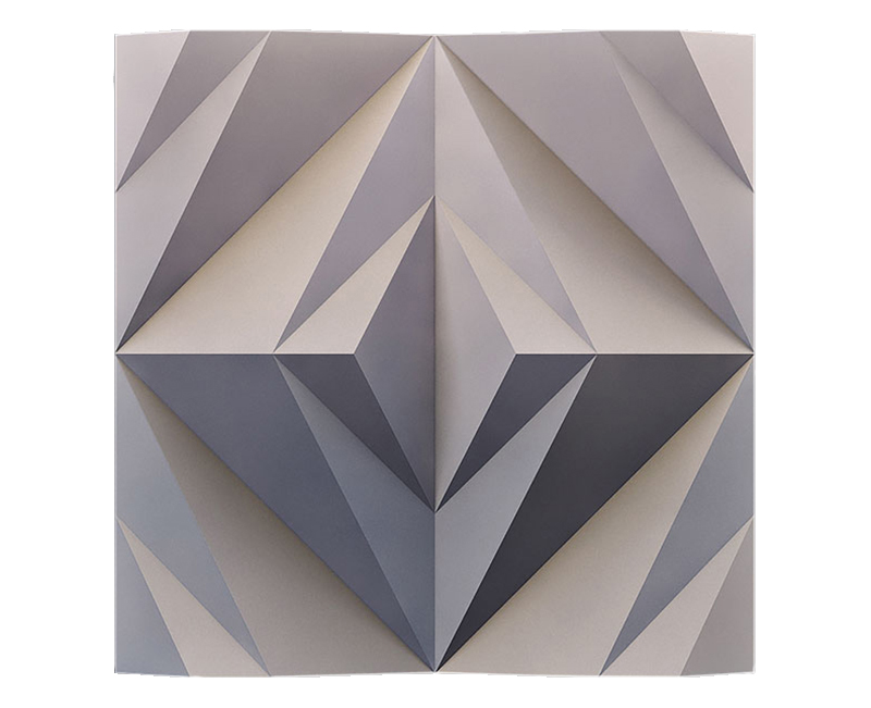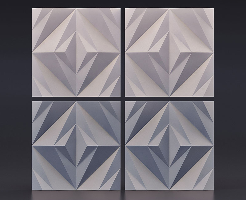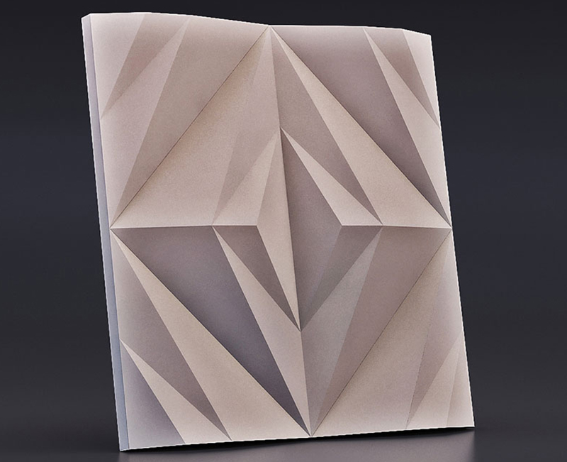 Гипсовые 3D панели Крупные Ромбы с геометрическим рисунком созданы в виде плитки размером 50х50 см. Их легко и просто укладывать. Просчитать площадь поверхности стен и требуемое количество плиток не составит труда. Общая площадь четырех модулей составляет ровно 1 кв. м.