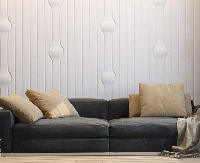Гипсовые 3D панели Линии с вертикальным рисунком не только превосходно декорируют стены, но и зрительно "поднимают" потолок.