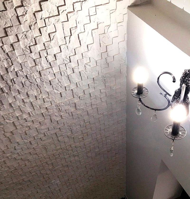 Фактурная панель 3D гипсовая Рафинад с имитацией каменной мозаики - шикарный способ отделать стены помещения. Разная высота рельефа гипсовой панели создает удивительную игру света и тени, воссоздавая интерьер старинного замка. Современная гипсовая панель Рафинад превосходно выглядит как в интерьере ресторана, гостиницы, так и на стенах квартиры и загородного дома.