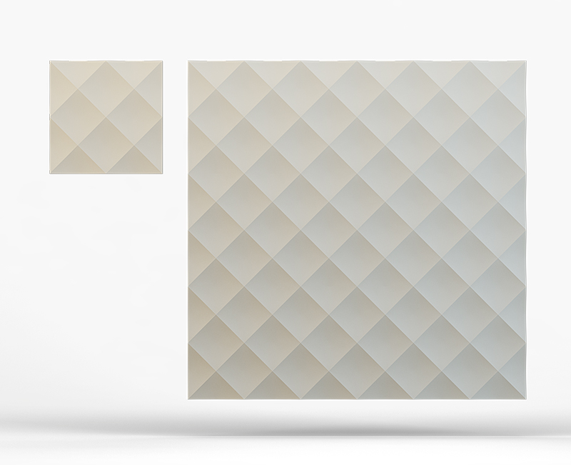 Гипсовые 3D панели Ромбы с простым геометрическим рисунком универсальны для любого интерьера. Нейтральный дизайн панелей украсит любое помещение. Легкий рельеф создаст мягкую игру светотени на стенах.