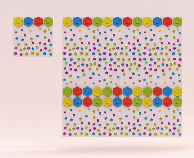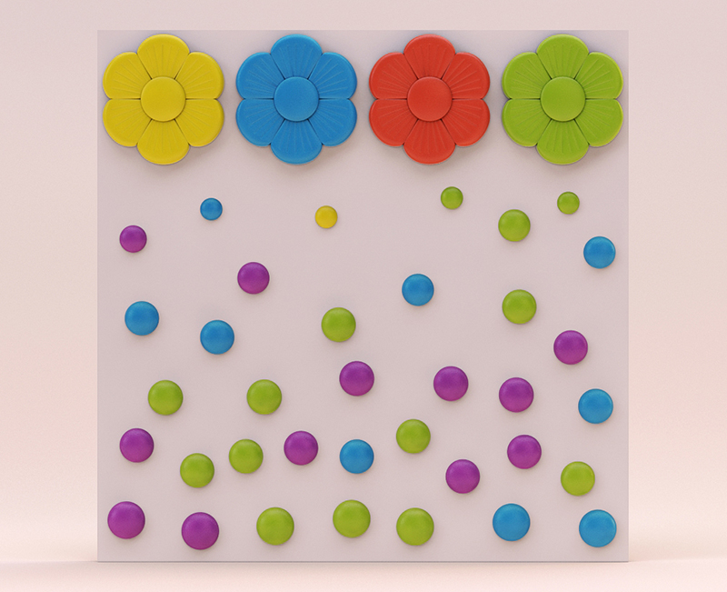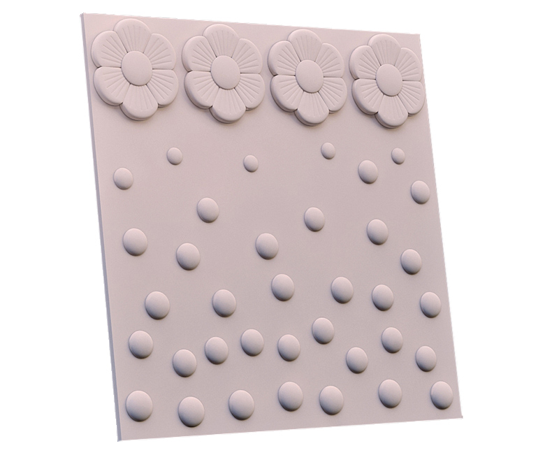 Гипсовые 3D панели Точки предназначены для детского интерьера. Забавный рисунок модулей в виде точек и цветов превосходно впишется в детскую комнату, тем более, что плитка из гипса - абсолютно безопасный и экологичный материал.