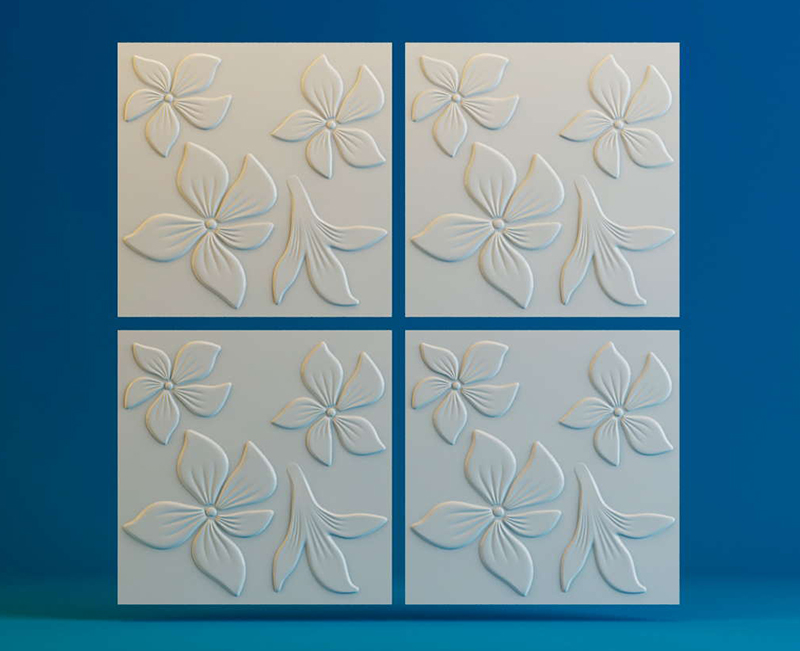 имеют интересный флористический принт. Объемные цветы великолепно украшают стены гостиной, детской, спальни. Простой и красивый узор плитки из гипса не имеет строгой привязки к какому-либо стилю интерьера.