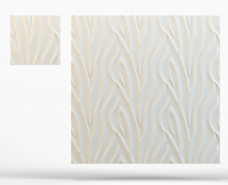 Гипсовые 3D панели Зебра созданы в виде плитки размером 50х50 см. Их легко и просто укладывать. Просчитать площадь поверхности стен и требуемое количество плиток не составит труда. Общая площадь четырех модулей составляет ровно 1 кв. м.