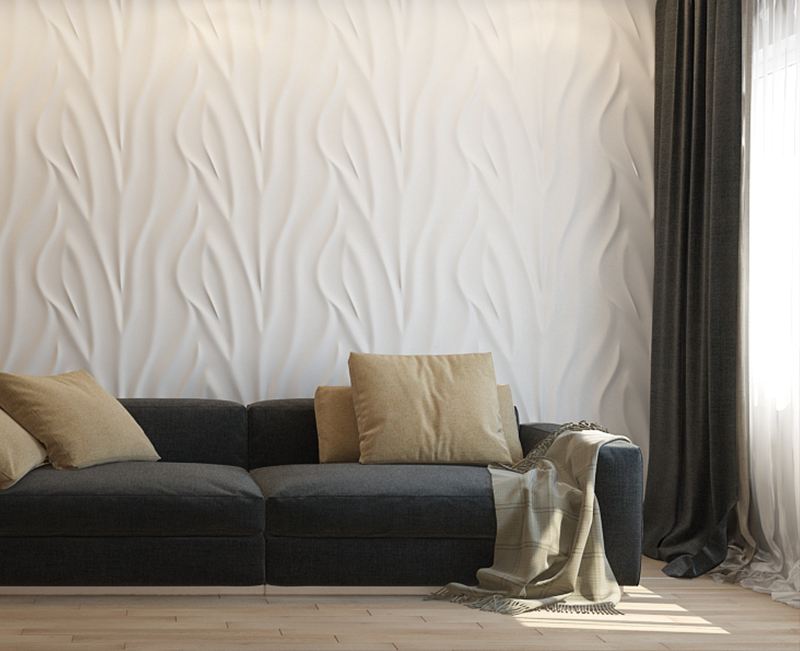 Благодаря 3D гипсовым панелям интерьер комнаты приобретает небрежный шик и элегантность. Самыми лучшими помещениями для них являются гостиная и спальня. Их можно окрашивать в любые цвета, что непременно создаст в комнате дополнительный уют и настроение. Часто используются в качестве перегородок для зонирования пространства.