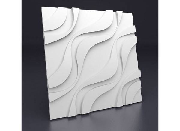 3D гипсовые панели панели Устина с диагональным волнистым рельефом создают удивительную игру света и тени, притягивают взгляды, добавляют движение в интерьер помещения.