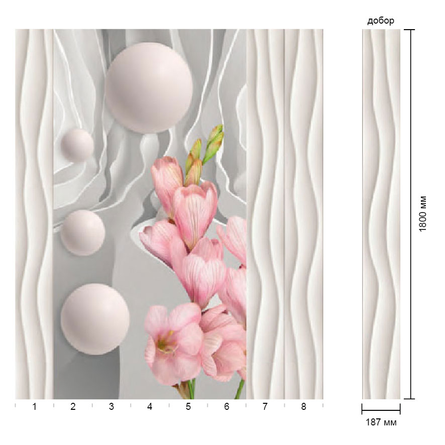 Комплект состоит из 8 панелей. Если комплект покрывает не всю площадь помещения, то можно купить доборы отдельно размером 1800*187 см.