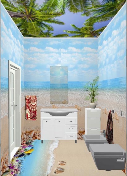 Влагостойкие 3D полы Атолл с изображением морского берега и волн - практичный вариант напольной отделки для дома. Живописный пейзаж побережья - подходящая тема для оформления туалета, ванной и других помещений с повышенной влажностью.