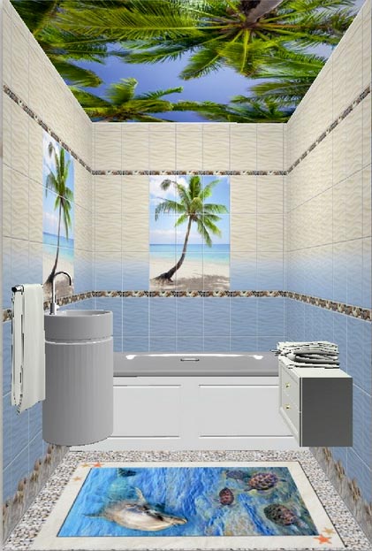 Оплата картой онлайн переводЖивописный 3D пол Карибы с дельфинами и имитацией речной гальки станет главным украшением ванной комнаты. Он состоит из 8 панелей. Морской пейзаж - это подходящая тема для SPC-пола для ванной, кухни и других помещений с высокой влажностью.