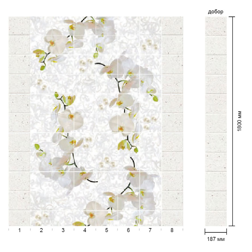 Комплект состоит из 8 панелей. Если комплект покрывает не всю площадь помещения, то можно купить доборы отдельно размером 1800*187 см.