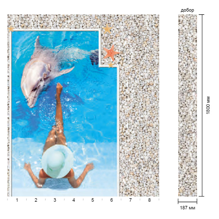 Комплекты 3д полов формируются из 8 или 11 панелей. При нехватке элементов пола можно докупить доборы, которые имеют такое же дизайнерское оформление, как и весь комплект.