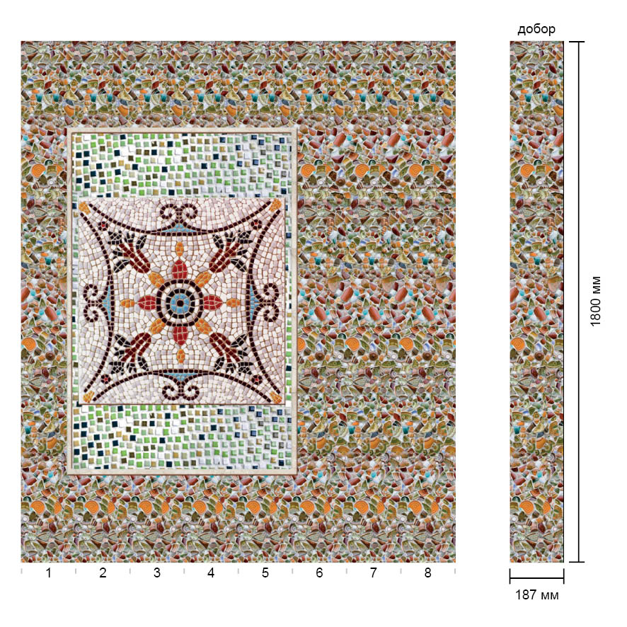 Коллекция состоит из 8 панелей. Если комплект покрывает не всю площадь помещения, то можно купить доборы с аналогичным дизайном отдельно размером 1800*187 см.