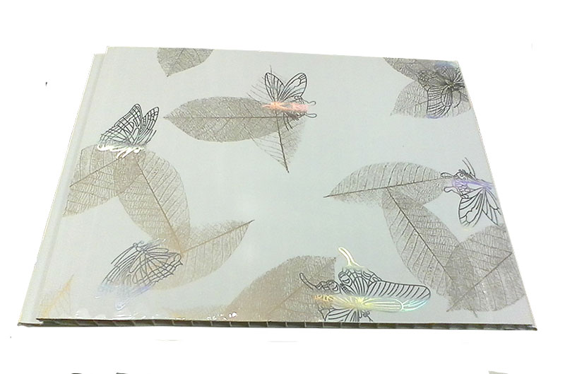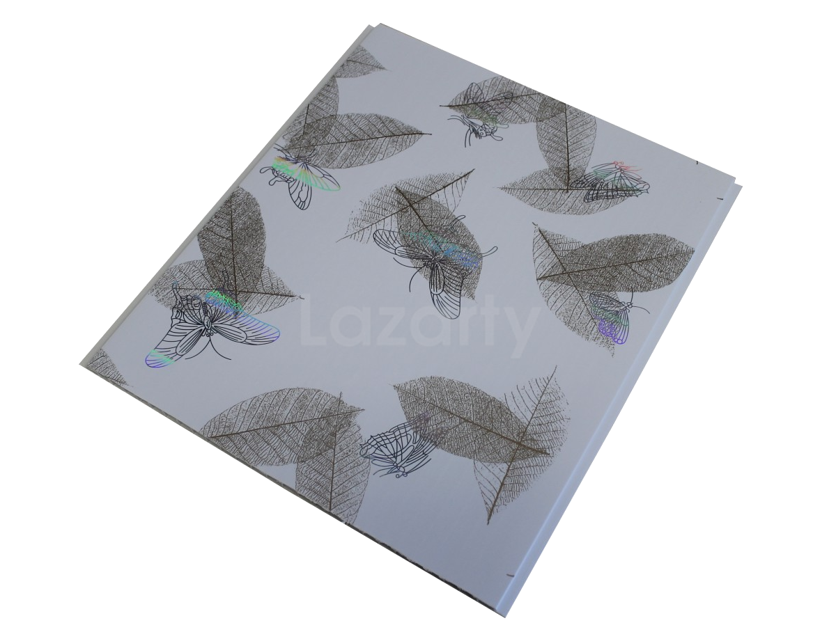 Белые голографические панели ПВХ Бабочки бежевые с нежным флористическим рисунком превосходно смотрятся на стенах и потолке. Серебристые бабочки и золотистые листья поддержат любую тему в интерьере. Помимо эстетической привлекательности панели имеют ряд достоинств: