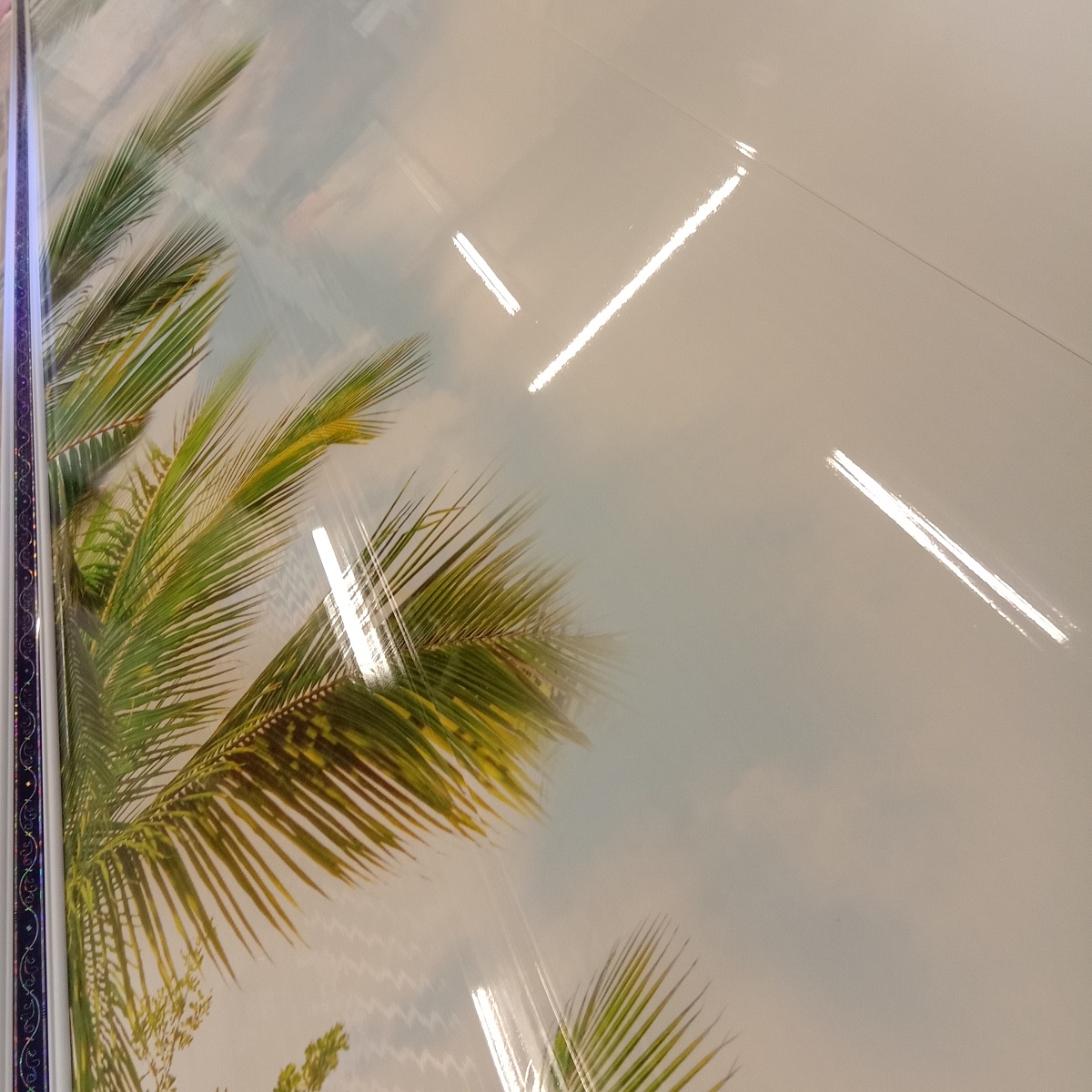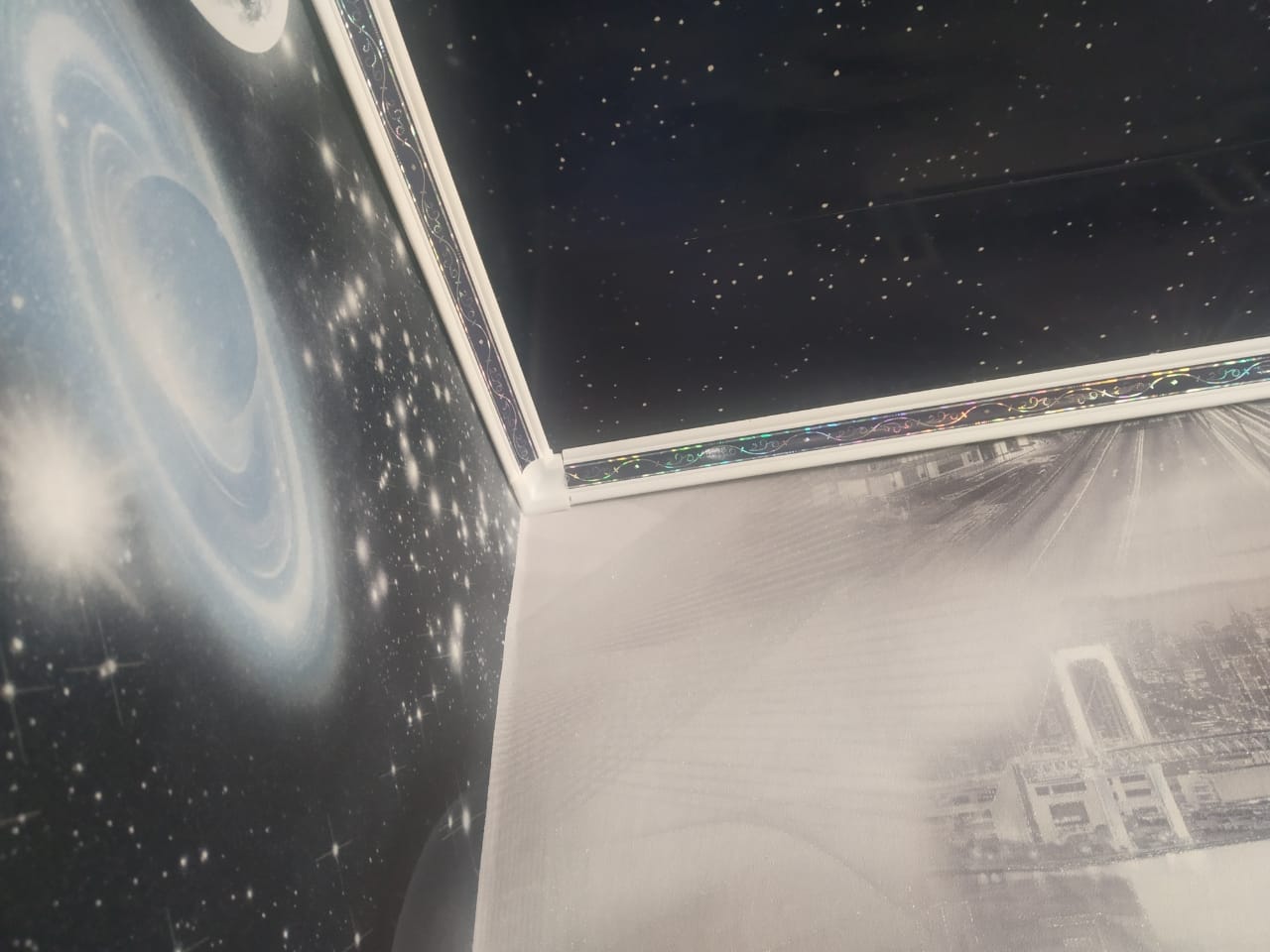 Плинтус потолочный Лоза синяя с голографическим контрастным рисунком предназначен для панелей ПВХ 7-9 мм.