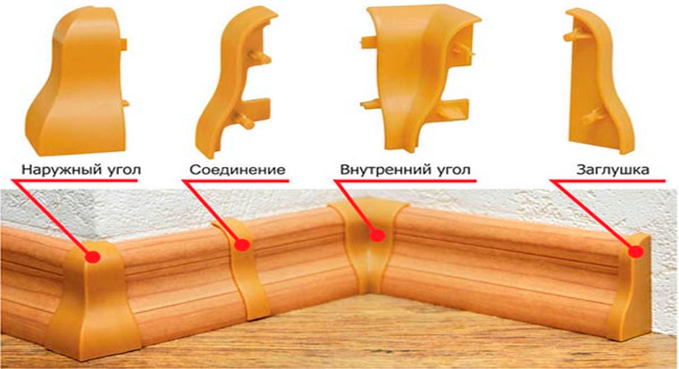 Аксессуары придают завершенность внешнему виду, соответствуют цвету и текстуре плинтуса, просты в монтаже и обеспечивают надежное соединение.