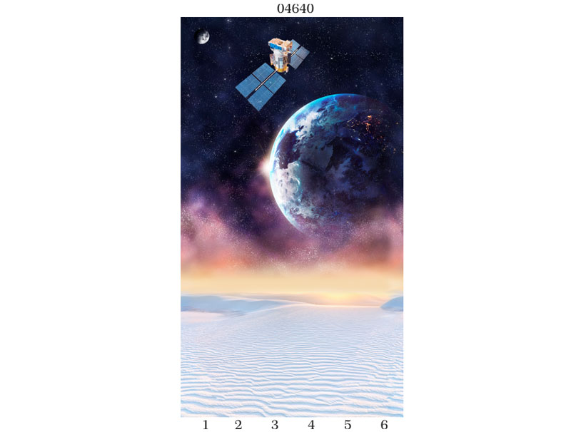 Рисунок 1 панелей ПВХ Панда Космос представляет собой комплект из шести пластиковых ламелей с фантастическим космическим пейзажем. Изображение расположено снизу до верху, что делает композицию более зрелищной и объемной.